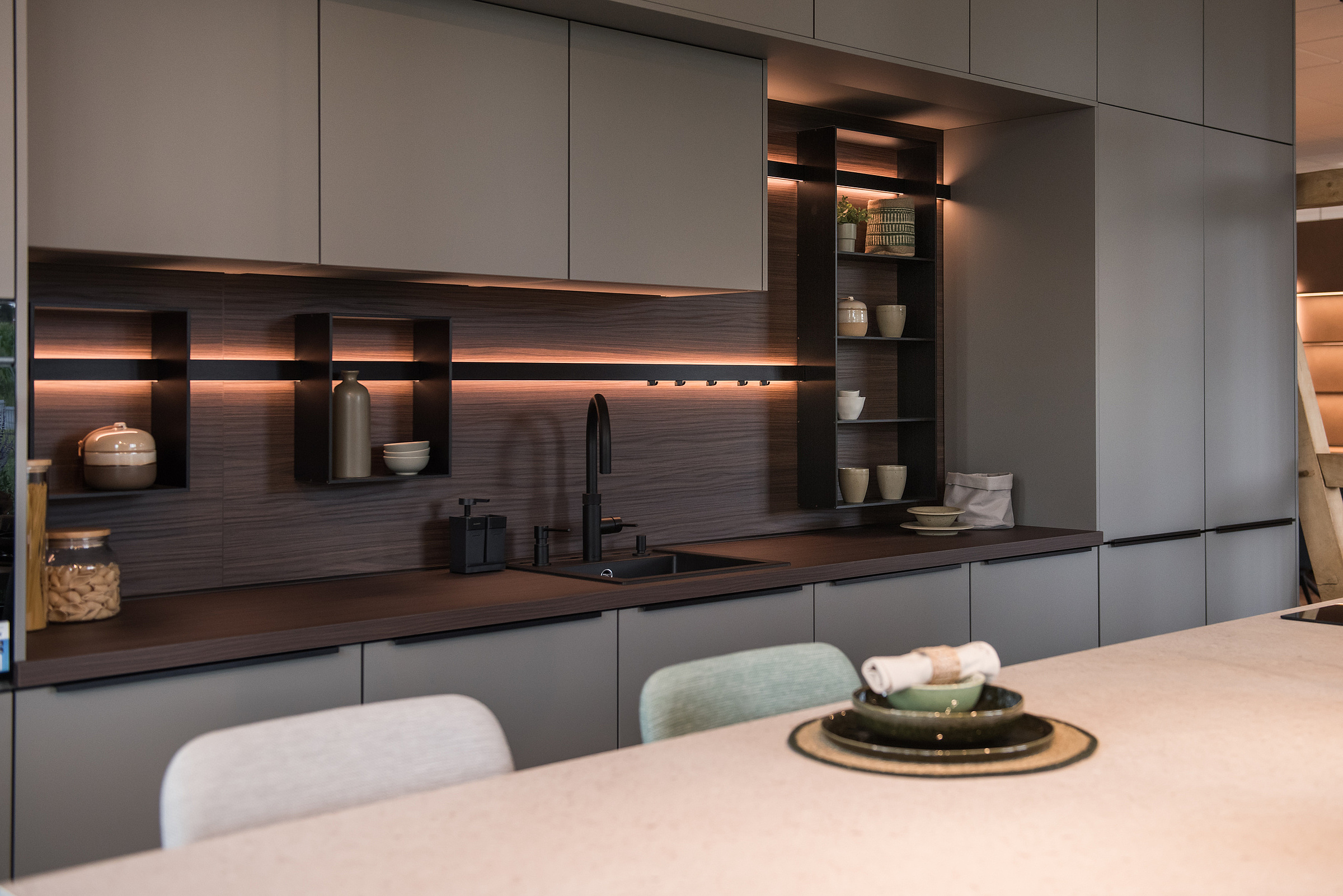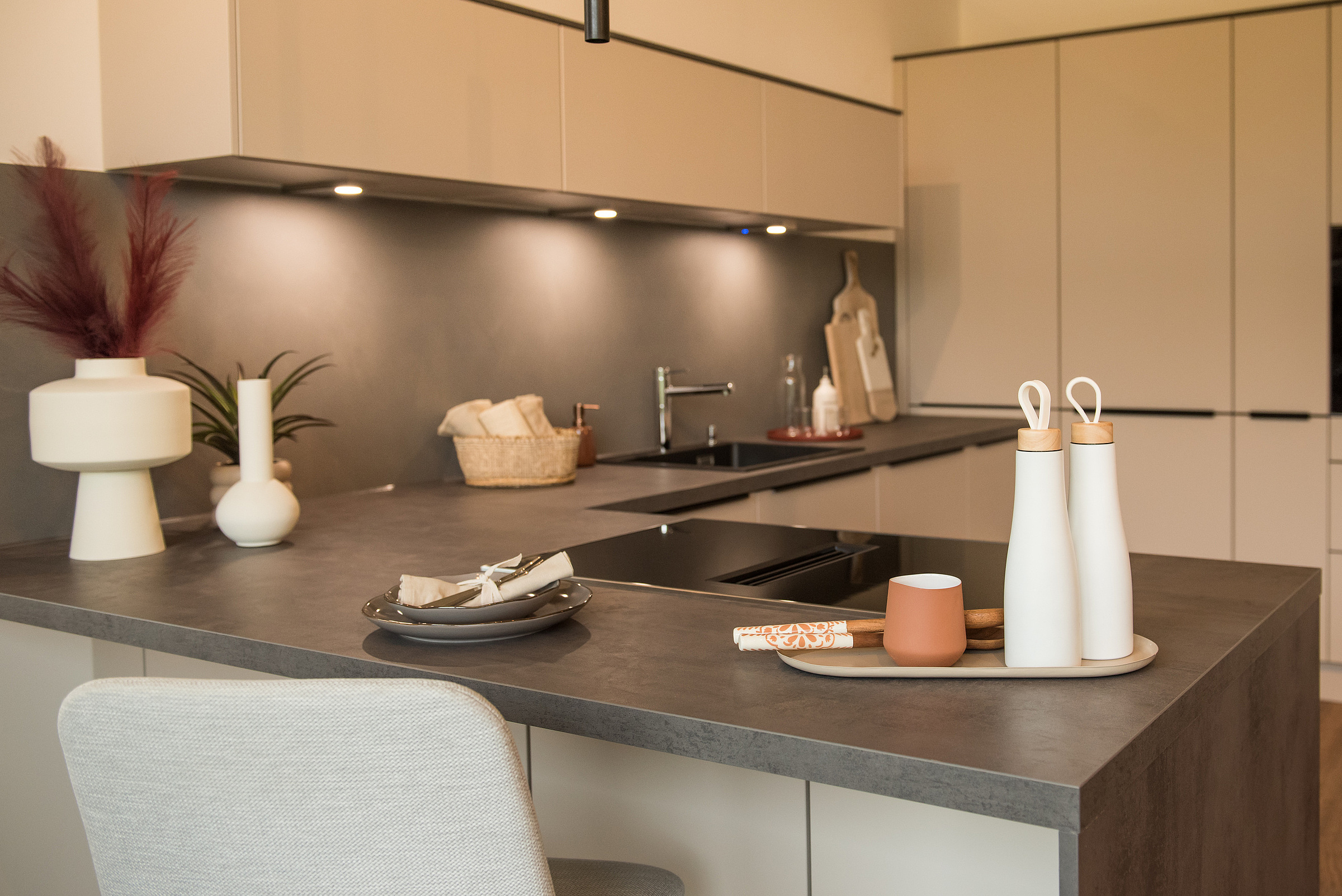 Willkommen in unserer Ausstellung – dem Herzstück unseres Küchenstudios. Hier erwarten Sie fünf liebevoll gestaltete Musterküchen, unsere sogenannten Kojen, die unterschiedliche Lebensstile, Ansprüche und Designvorlieben widerspiegeln. Lassen Sie sich inspirieren, entdecken Sie Materialien, Farben und innovative Lösungen und finden Sie die Küche, die perfekt zu Ihrem Zuhause und Ihrem Alltag passt.